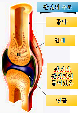 관절은 우리의 몸은 약 200개의 크고 작은 뼈로 구성되어 있습니다. 관절은 이들 뼈와 뼈 사이의 이음쇄 역할을 하는 기관입니다. 일상생활에서 관절을 움직이는 경우는 1일 10만여 회나 됩니다. 관절은 연골, 활액, 활액맥으로 이루어져 있습니다. 연골은 물렁뼈라고도 하며 백색 탄력성 물질이며 체중의 10배가 되는 무게에도 견딜 수 있게 도와주는 충격 흡수 작용을 합니다. 주성분은 콜라겐, 프로테오글라칸(Proteglycan), 수분, 콘드로이친 등으로 이루어져 있습니다. 젊었을 때는 체내에서 자연 생성되나 45세 이후에는 생성 작용이 떨어지고 이 때문에 연골이 얇아져 뻣뻣한 증상이 나타나고 더 경과되면은 움직일 때마다 통증이 오게 되는데 심해지면 가만히 있어도 통증이 오게 됩니다.